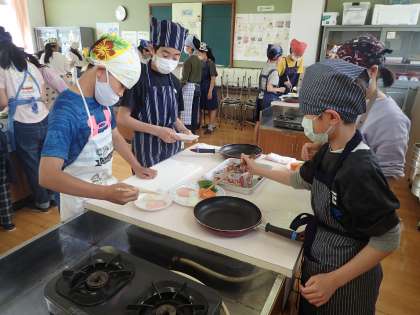 包丁の持ち方や火の扱い方など、安全に気をつけて活動をsることができました。