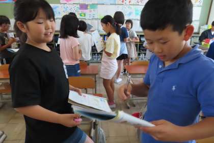 最近の4年生は相手の言ったことに対して、Nice. Good. など英語で反応できる人が増えてきました。この日は、相手が言ったことが聞こえず、One more time, please. と聞き返している人もいましたね。