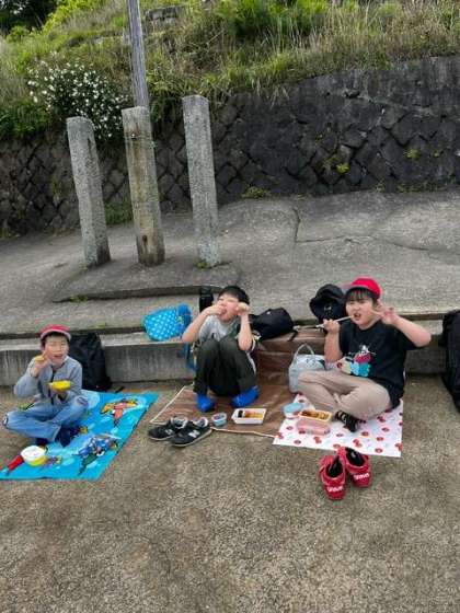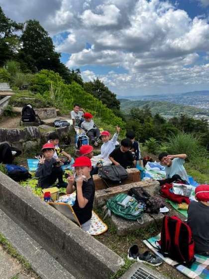 ご飯を食べながら、子どもたちは京都市について気づいたことをたくさん話しています。