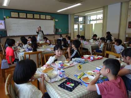 いつもと違う場所での給食はとても新鮮で、たのしい時間になったようです。