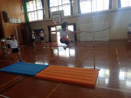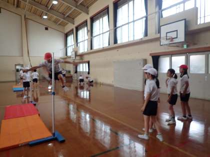 体育科で「走り高跳び」の学習をしています。