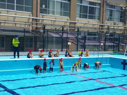 低水位からのスタートで、水泳学習の進め方を確認しました。