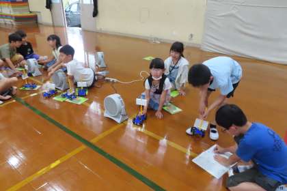この日は、風の強さを変えると、ものを動かすはたらきは、どのようにかわるかどうか実験しました。