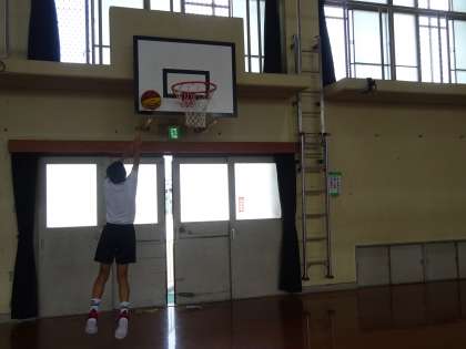 夏休みに入りましたが、体育館ではバスケットボール部の子どもたちが練習に取り組んでいます。
