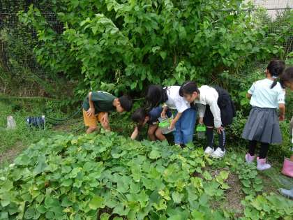 2年生は生活科「小さな友だち」の学習で、学校にいる「小さな友だち」を探しに出かけました。「どんなところにいるかな。」「あ、コオロギの声が聞こえた。」といろいろな感覚を使いながら、探す様子が見られました。