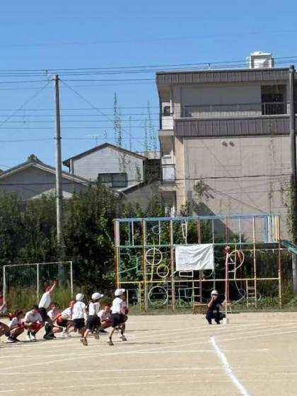 1年生の50m走です。初めての大将軍カップ。ゴールまで一生懸命走り切りました。