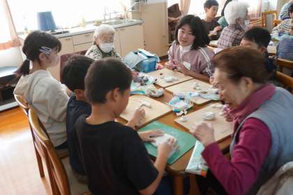 すこやか学級のみなさんと、図画工作科「元気のおまもり」の学習で交流しました。たくさんお話をしながら、おまもりを作っていました。作った作品は、12月8日(日)の「大将軍まつり」で展示します。すこやか学級のみなさん、ありがとうございました。