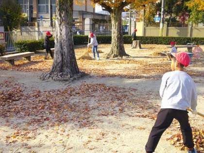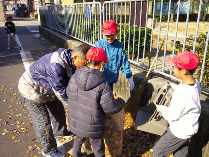 11月に引き続き、比賀江さんをはじめとする地域の方々にお世話になり、小学校の前の公園清掃をしました。