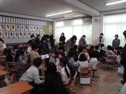 2年生は、これまで学習してきた英語活動のまとめとして「オリジナル絵本」の紹介を行いました。