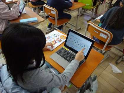 2年生は、音楽科の学習でたくさんの「わらべうた」に親しんでいます。わらべうたには、決まった音がたくさん使われていることにも気づきました。