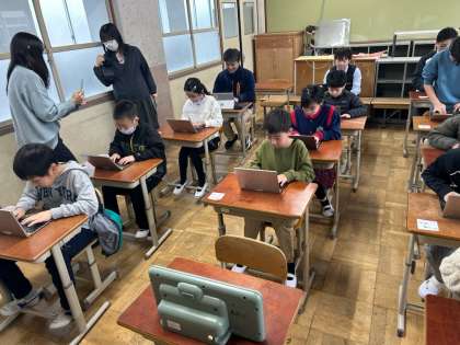 これまで培ってきたタイピングの力はどれぐらいなのか、キーボー島で一定の級に達した子どもたちが自分たちの記録にチャレンジしました。