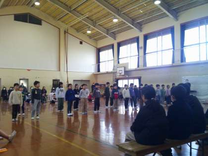 今日の3時間目に、全校児童が体育館に集まって「6年生を送る会」を行いました。