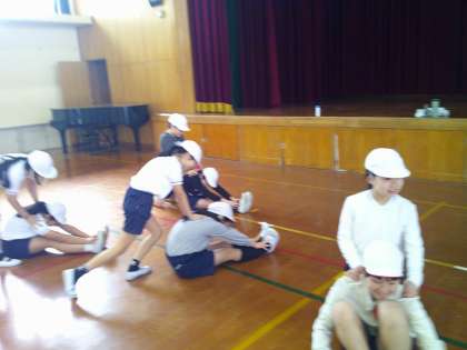 体育科では「体ほぐし運動」をして、友だちと一緒に楽しく体を動かしました。