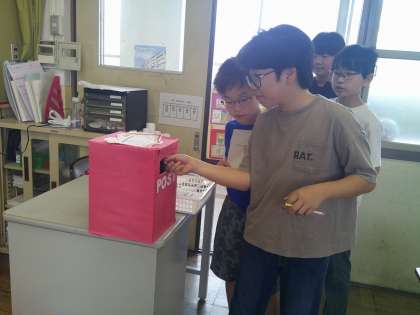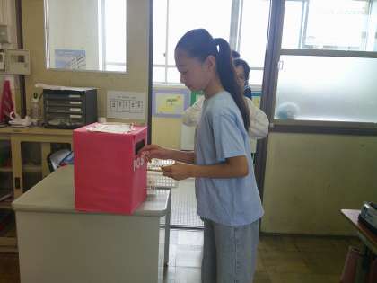 3人の候補者の話から、誰に入れるのかを考え、投票用紙(大将軍バージョン)に記入をしました。そしてそれを投票箱に入れ、開票を行いました。