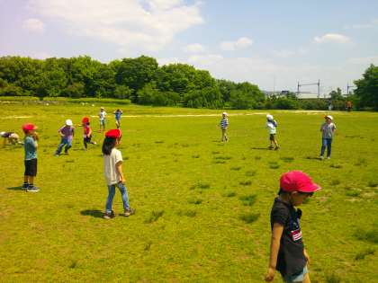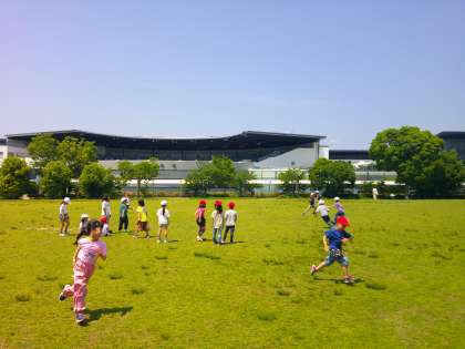 お弁当を食べた後は、芝生広場で遊びました。暑い中でしたが、おにごっこなどをして元気に遊んでいました。今日はたくさん活動して、楽しい1日でした。おうちでもお話を聞いてあげてください。