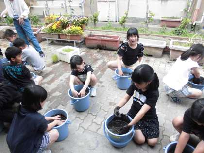 フカフカの土の感覚を子どもたちは楽しみながら作業を行いました。