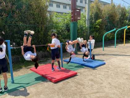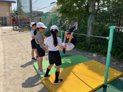 体育科の「鉄棒」の学習をしました。苦手だった技も何度も練習することで、できる技が増えていきました。