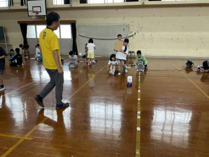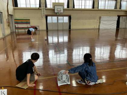 理科の「風とゴムの力のはたらき」の学習で、車と送風機を使って風の力について実験しました。3年生になって初めての実験でグループで協力しながら順番に実験をしていました。