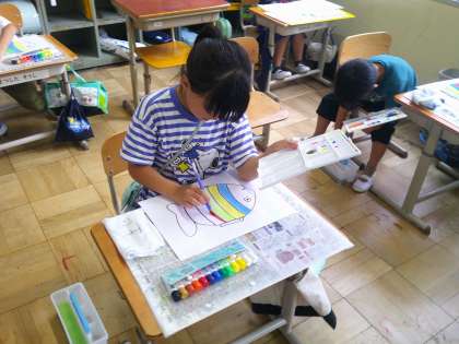 今日の図画工作科の学習では、絵の具セットを使って色を塗る練習をしました。前回やった絵の具の使い方を思い出しながら、魚の絵に色を塗っていきました。1つ1つ丁寧に塗ることができ、素敵な魚が仕上がりました。