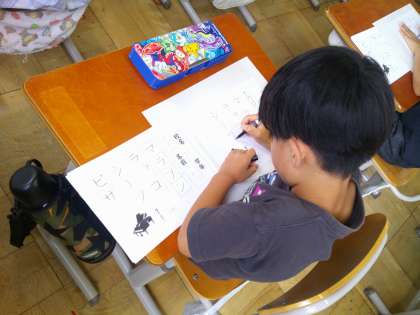 今日の書写の学習では、ペンでカタカナを書く学習をしました。書き順やはらいの向きに気を付けて書きました。みんな集中して書くことができました。