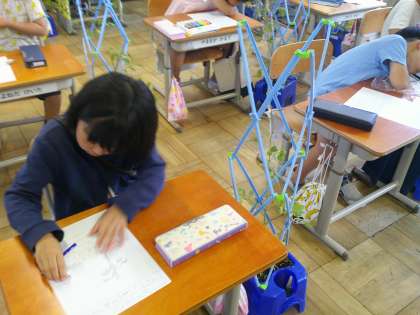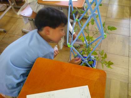 生活科の「おいしいやさいを そだてたい」の学習では、ミニトマトの観察をしました。実がついてきて、だんだん色が変わってきました。少しずつ赤くなってきているのを見て、とても喜んでいました。実が赤くなったら収穫し、おうちに持って帰ります。どんな味だったかぜひ教えてほしいです。