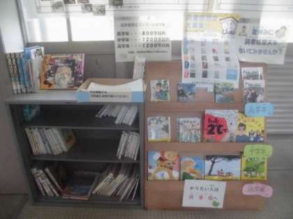 小学校の北校舎の1階に、課題図書を置いています。