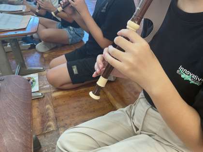 夏休みに練習してきた曲をリコーダーで演奏しました。