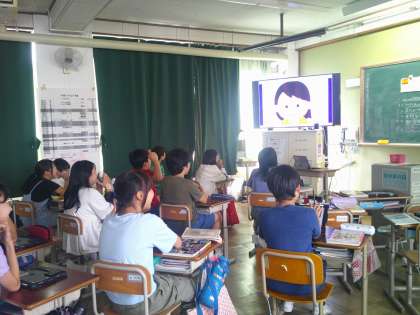 既習漢字を使って考えた台本を録音し、全体で紹介しました。