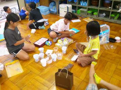 生活科の学習では、「あそんで 作って くふうして」の学習が始まりました。おうちからペットボトルや箱、カップなど身近なものを集めてきてもらいました。集めたものでどんなことができるか、いろいろ試しています。いろいろな遊びが思いつき、楽しく活動しています。