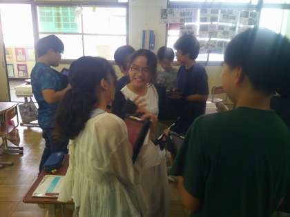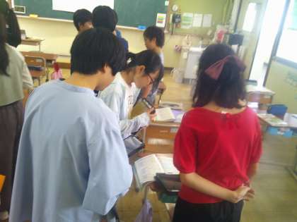 学習のまとめとして、6年生がそれぞれの組の“コーチ”となり、自分たちのチームのアピールポイントを考えて交流しました。