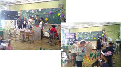 今日は、大将軍小学校の6年生教室で、スマイルアップ係主催の秋祭りを行いました。
