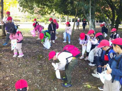 紅葉も少し進んでいてとてもきれいでした。また、楽しみにしていたどんぐりは、いっぱい拾えてみんな、大満足でした。