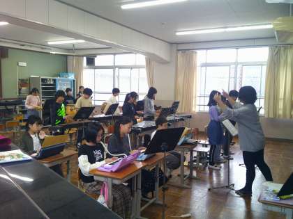 音楽科の授業では、学習発表会に向けて合奏や合唱の練習をしています。