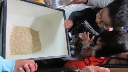 今日は、収穫したお米を精米させてもらいました。