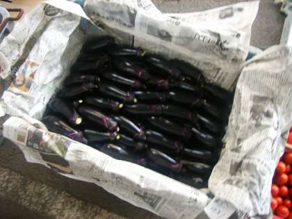 17日(水),3年生は,社会科の学習で花園青果市場の見学に出かけました。ついてみると,ナスやキュウリ,トマト,枝豆など旬の野菜がいっぱい並んでいました。八百屋さんがたくさん来ていて,セリにかけて値段を決めていました。
