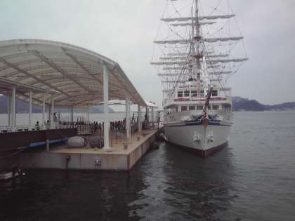 今,渦潮鑑覧船に乗船し,福良港を出航しました。待ち時間には南あわじ温泉の足湯も体験できました。みんなすこぶる元気です。たくさんの渦潮を見ることができるでしょう。