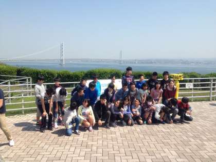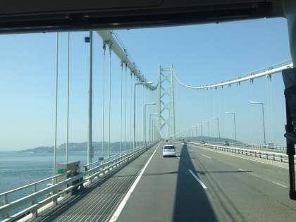 只今,淡路サービスエリアです。明石海峡大橋をバックに写真を撮りました。