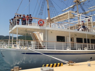うずしお観潮船に乗りました。12時50分から1時間の旅です。福良港を出発!