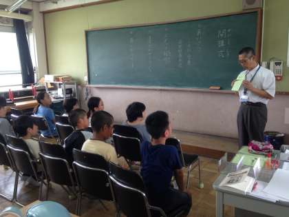 本日午後3時から低学年(1〜3年生)の放課後まなび教室の開講式を、午後4時から高学年(4〜6年生)の開講式を開きました。写真は高学年の様子です。