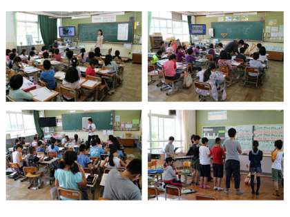 今日の3時間目から4時間目の子どもたちの学習の様子です。2年生は校区探検をした後、写真を使ってふりかえりをしていました。3年生は算数の学習でコンパスを使って円を描いていました。4年生は毛筆で「左右」を書いていました。6年生は音楽室で「マルセリーノの歌」の合奏練習をしていました。
