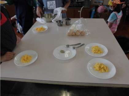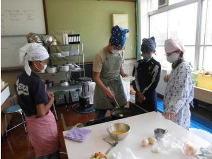 今回はいり卵を作りました。班の友だちと,手順や味付けを確認しながら安全に気を付けて調理しました。どの班もおいしくできました。