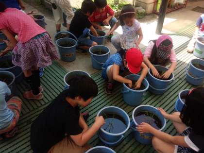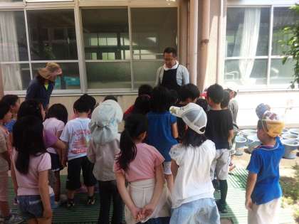 お米マイスターの高田さんにいろいろ教えてもらいながら,秋におにぎりにして食べられるように,世話をしていきます。