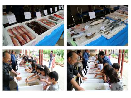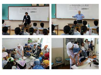 魚の展示では、子どもたちは目を輝かせ、魚に触れていました。また、6年生もプロの方々に魚をさばく技術を学びました。普段の生活の中では、魚を丸ごと見る機会が減ってきています。本当に子どもたちに貴重な体験をさせていただきました。