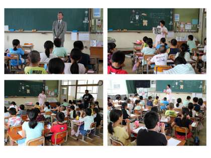 今日の2時間目に、4年生は歯みがき巡回指導を受けました。歯科衛生士さんが来校されて、子どもたちはむし歯にならないために生活の中で気を付けることや上手な歯の磨き方について教わりました。