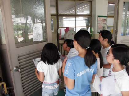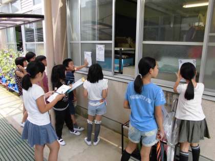 今日は高学年です。校舎の入り口や保健室前など,全部で8問の問題があります。さす