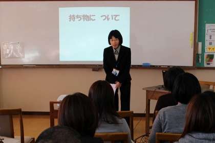 保護者の皆様には、入学にあたっての準備を中心にお話を聞いていただきました。入学式で提出していただく書類やそれまでに行っていただく手続き等も併せてよろしくお願いいたします。