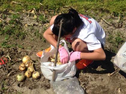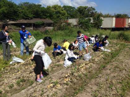 玉ねぎを収穫しました。思っていたより,重い!という声が聞かれました。