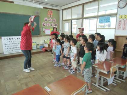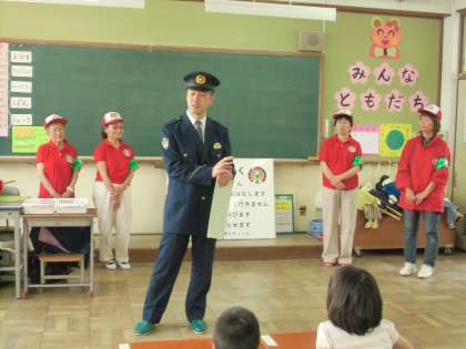 5月24日(火)5校時,1年生で「防犯教室」を実施しました。北警察署と平安レディースの方々が本校においでいただき,不審者から身を守るための具体的な方法や,正しい行動の仕方を指導して下さいました。人形を使って,分かりやすくお話をして下さり,子どもたちは楽しく学習することができました。「自分で自分の身を守る5つの約束」を,みんなで覚えました。毎日の生活の中でしっかりと実践できるように,今後も,子どもたちの防犯意識を高めていきます。