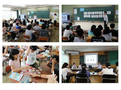 子どもたちは、活動をもとに目的地となる「建物」や「まっすぐ行く」「右に曲がる」といった英語での言い方など、くりかえし声に出していました。