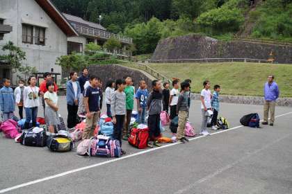 花背山の家に、10時10分頃に到着し、さっそく入所式をおこないました。その様子です。